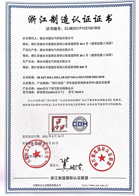 浙江制造認(rèn)證證書